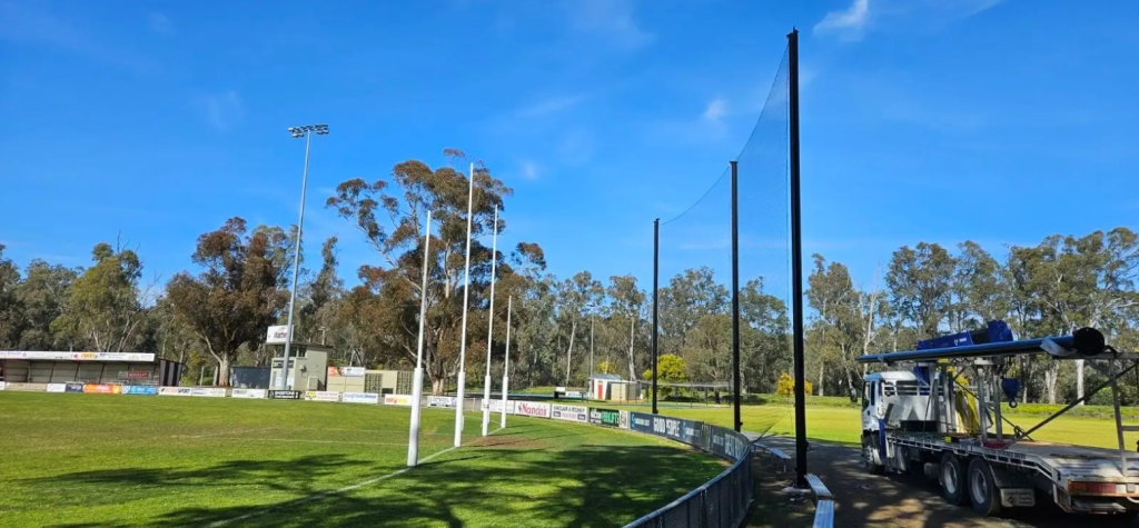 Katty East Engineering designs, supplies, and installs heavy-duty AFL football nets for local football clubs, councils, and sporting facilities. Each system is custom-built to suit individual oval dimensions and uses a cable-operated design that allows nets to be raised and lowered as required. Built for long-term durability and minimal maintenance, these permanent installations help improve safety, prevent lost footballs, and protect surrounding areas such as roads, spectators, and nearby buildings. From design through to installation, we provide a complete, tailored solution to suit your facility.
